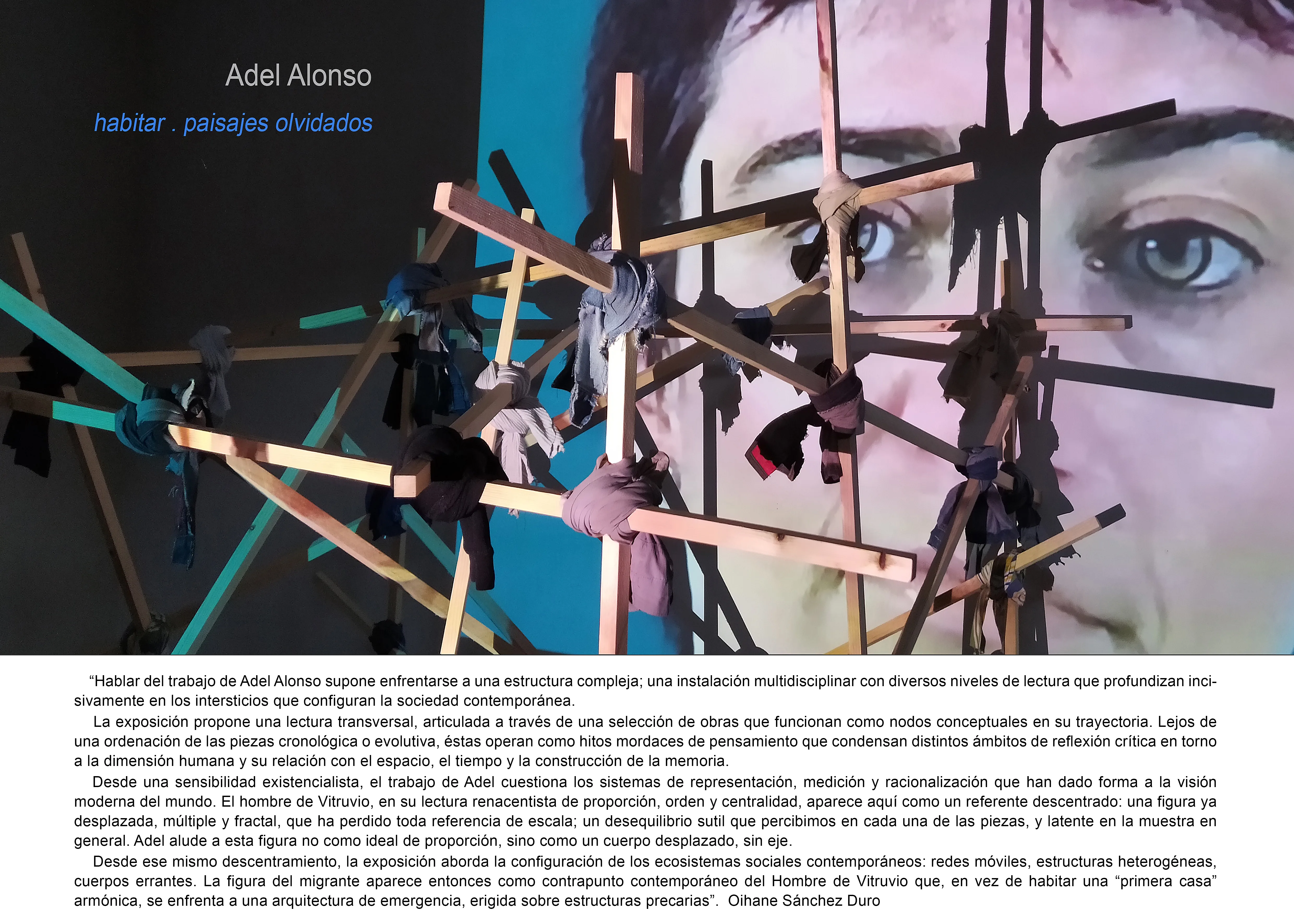 Hablar del trabajo de Adel Alonso supone enfrentarse a una estructura compleja; una instalación multidisciplinar con diversos niveles de lectura que profundizan incisivamente en los intersticios que configuran la sociedad contemporánea.