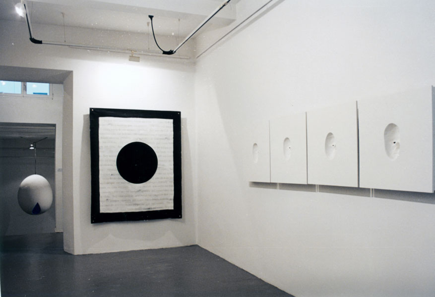Desde el agujero practicado en el cristal exterior el visitante es incorporado en un contexto espacial del que forma parte activa. La intervención de la cristalera proporciona, a través de una ranura en doble ojiva, la percepción del espacio de exposición como un espacio con entidad propia, y desplaza la idea de sala de exposiciones como contenedor de obra. A partir de esta predisposición se instalan las obras en función de un recorrido estratégico para activar mecanismos de comunicación y experiencias subjetivas. La sucesión do espacios encadenados hacia el interior describe ciertas analogías con el trayecto hacia el interior subjetivo y sensitivo individual. Las obras son espacios de convergencia y de participación.
